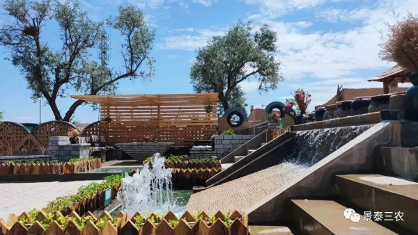 喜泉镇充分挖掘大水䃎村现有资源,依托大敦煌影视文化旅游资源和大水䃎村交通区位两大优势,结合易地搬迁占新拆旧和闲置农房激活,建成“青舍”“䃎畔·墨苑”等风格迥异的农家乐,通过展销本地和尚头面粉、小杂粮等农特产品,让“旅游之足”“消费之手”打通农特产品销售渠道,进一步增加休闲乡村旅游附加值,持续推进大水䃎村休闲乡村旅游“吃、住、行、游、购、娱”全产业链建设。打造集旅游观光、休闲度假、餐饮娱乐、商贸物流为于一体的大水䃎“文旅小镇”田园综合体。着力构建“春赏花、夏采摘、秋收获、冬体验”的四季游格局,让“美丽成果”转化为“美丽经济”。