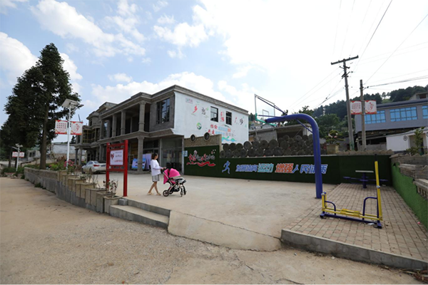 随后,摄影团前往么站镇的平原社区进行参观。毕节医学高等专科学校医学技术系办公室主任许建国在么站镇挂职副镇长,对驻村工作很投入,很有激情。他为摄影团一行介绍了刚下车即映入眼帘的平原社区乡愁小广场。该广场位于平原社区夏家院组,占地面积400平方米,村干部在前期走访调查中发现很多夏家院组村民向村干部反映迫切想要一个在闲暇之余可以休闲娱乐的场所,因此,后来经村民大会决定在夏家院修建一个集休闲、运动、娱乐于一体的活动场地。在建设之初,村干部找不到合适的地块修建,夏家院组居民王邦朝主动找到村干部,表示愿意将他家原有老住宅拆除,无偿将老住宅宅基地捐赠出来修建小广场。修建时,全村群众又自发捐赠了很多老石磨、旧水缸,乡贤理事会捐赠了运动器材,县团委成立的春晖社志愿者还无偿帮忙绘画村舍墙画,在大家的共同努力下不仅把小广场建设成了独具本地乡土特色留得住乡愁的小广场,村容村貌更是得到了整体提升。