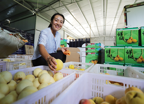 工作人员正在为“巫溪冬桃”包装刚运输来的新鲜“巫溪冬桃”