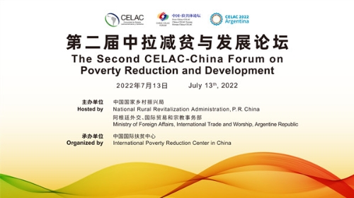 2022年7月13日,由中国国家乡村振兴局和阿根廷外交、国际贸易和宗教事务部联合主办,中国国际扶贫中心承办的“第二届中拉减贫与发展论坛”以视频会议方式成功举办。论坛主题为“后疫情时代推进中拉减贫合作”,旨在助推中拉在减贫与农村发展领域的深入合作,为建设中拉命运共同体作出更大的贡献。来自中国和拉共体轮值主席国阿根廷等22个拉共体成员国有关部门代表、3个拉美地区国际组织代表、6个联合国机构代表、企业代表、专家学者,以及媒体代表等80余人参加会议。中国国家乡村振兴局综合司司长许健民、中国外交部拉美司副司长陈鲁宁、拉共同体阿根廷国家助理协调员玛丽安娜·曼特康·富玛度(Marina Mantecón Fumadó)、联合国拉丁美洲和加勒比经济委员会生产、生产力和管理司司长马里奥·卡斯蒂略(Mario Castillo)、联合国驻华协调员常启德(Siddharth Chatterjee)等出席论坛开幕式并致辞。