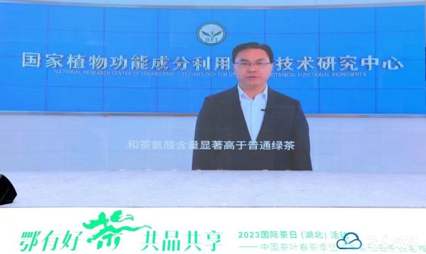 在咸丰县富硒白茶专场品茗推介现场,咸丰县委书记郭玲从一座城市的特色独具魅力、一片叶子的故事精彩纷呈、一杯白茶的韵味悠远绵长三方面隆重推介了咸丰及咸丰富硒白茶,期间,还视频连线了刘仲华院士品评咸丰白茶,展示了咸丰县采茶节盛况。