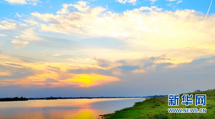 初秋时节,地处淮河颍上段润河镇的“小河湾”,风和日丽,秋高气爽。夕阳下,晚霞映淮水,水天一色,景色秀丽,美不胜收。