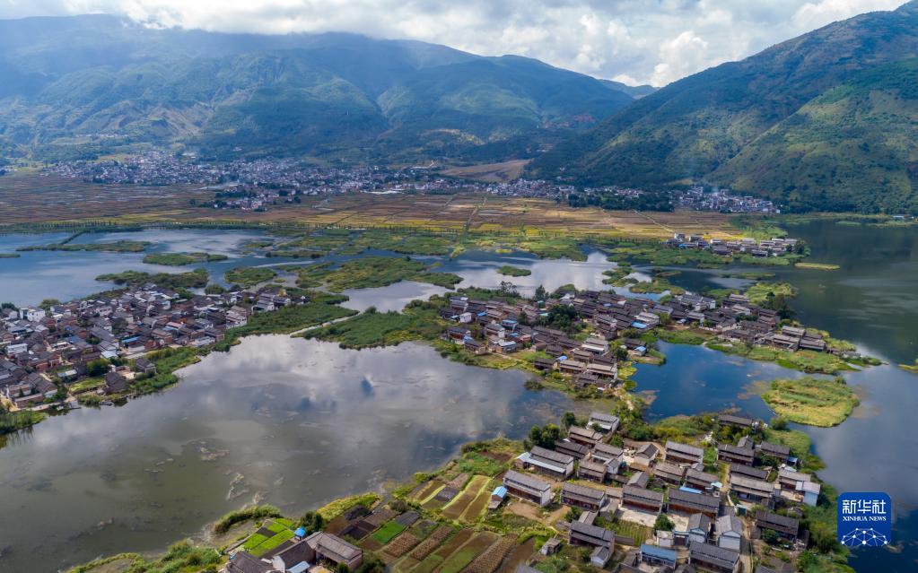 这是9月28日拍摄的洱源西湖一景(无人机照片)。