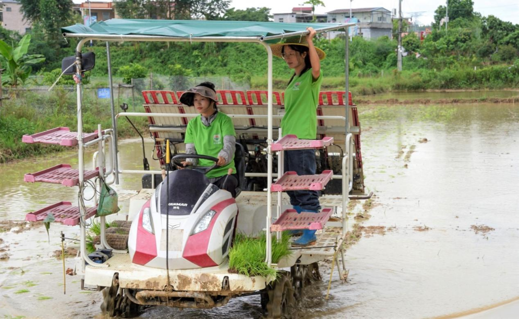 插秧机在田里熟练地来回穿梭